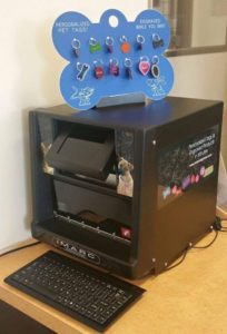 We are your one stop shop! We have a personal pet ID engraver. Small tags are $5.00 and large tags are $10.00