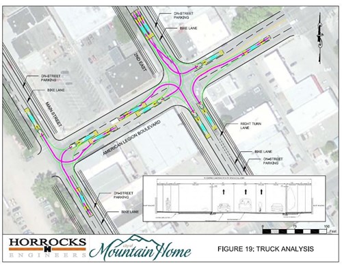 ITD required that the City of Mountain Home conduct a Traffic Impact Study to determine if it was feasible to reduce from 3 lanes of traffic to two lanes of traffic prior to any approvals of the plan by their department. The study was conducted by Horrocks Engineers and then validated by ITD engineers prior to moving forward with engineering. This step was necessary in order to move forward with construction of the downtown plan. It was not done to prove a pre-determined conclusion but to test the lane diet and ensure that our plan was feasible with traffic volumes (and anticipated future traffic volumes with estimated future growth).